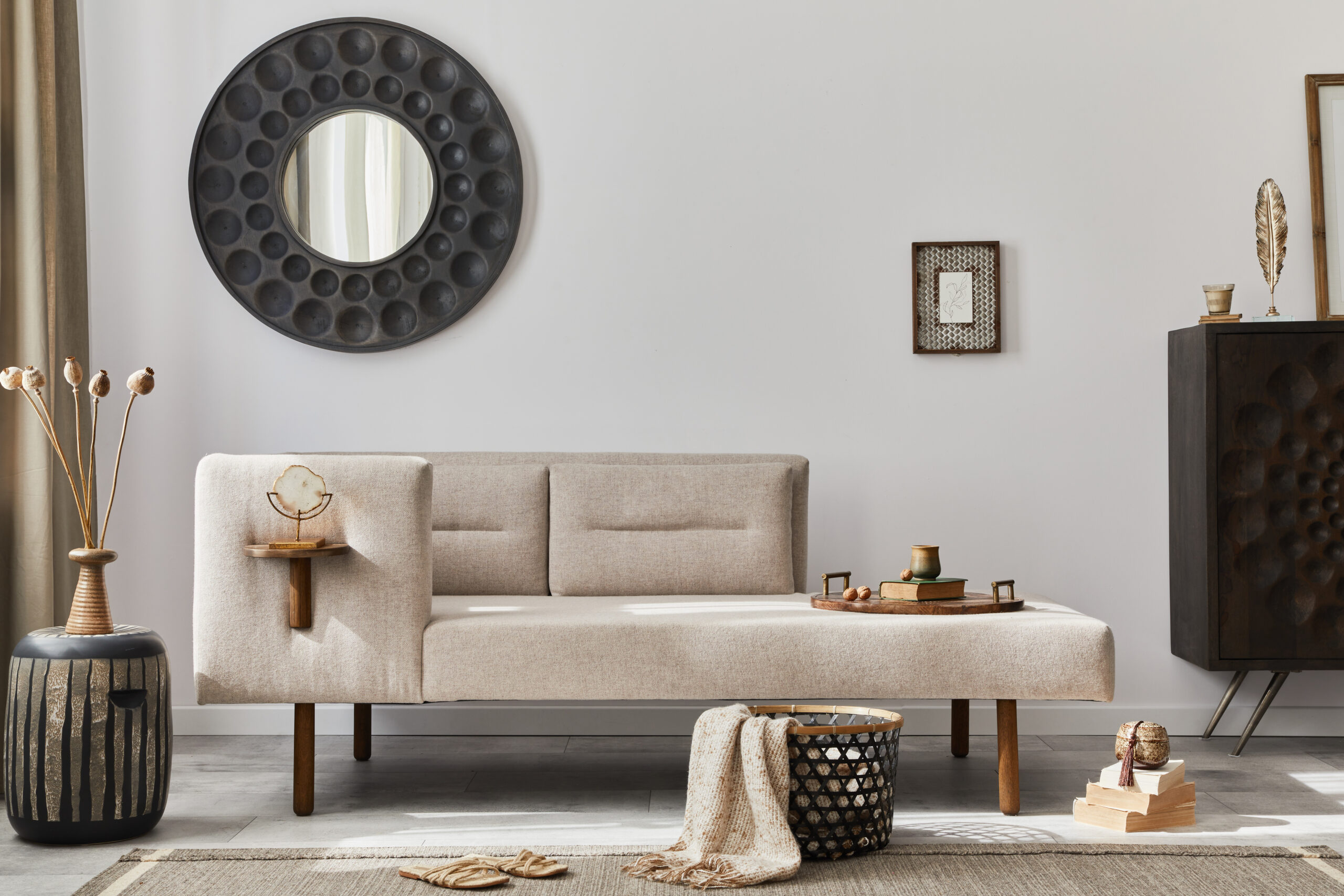 Prova ad abbinare il colore del divano ai tessili: tappeti, plaid, cuscini e tende.